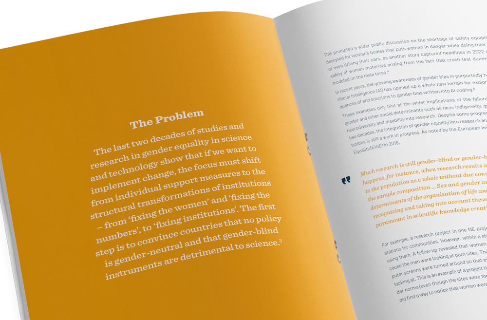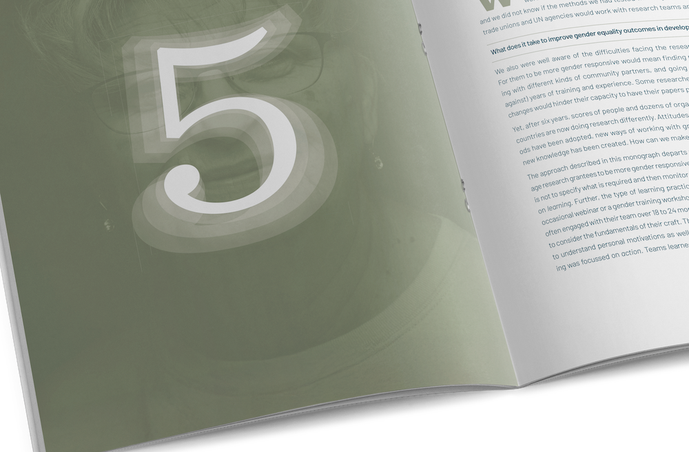 Editorial design for Gender at Work publication.