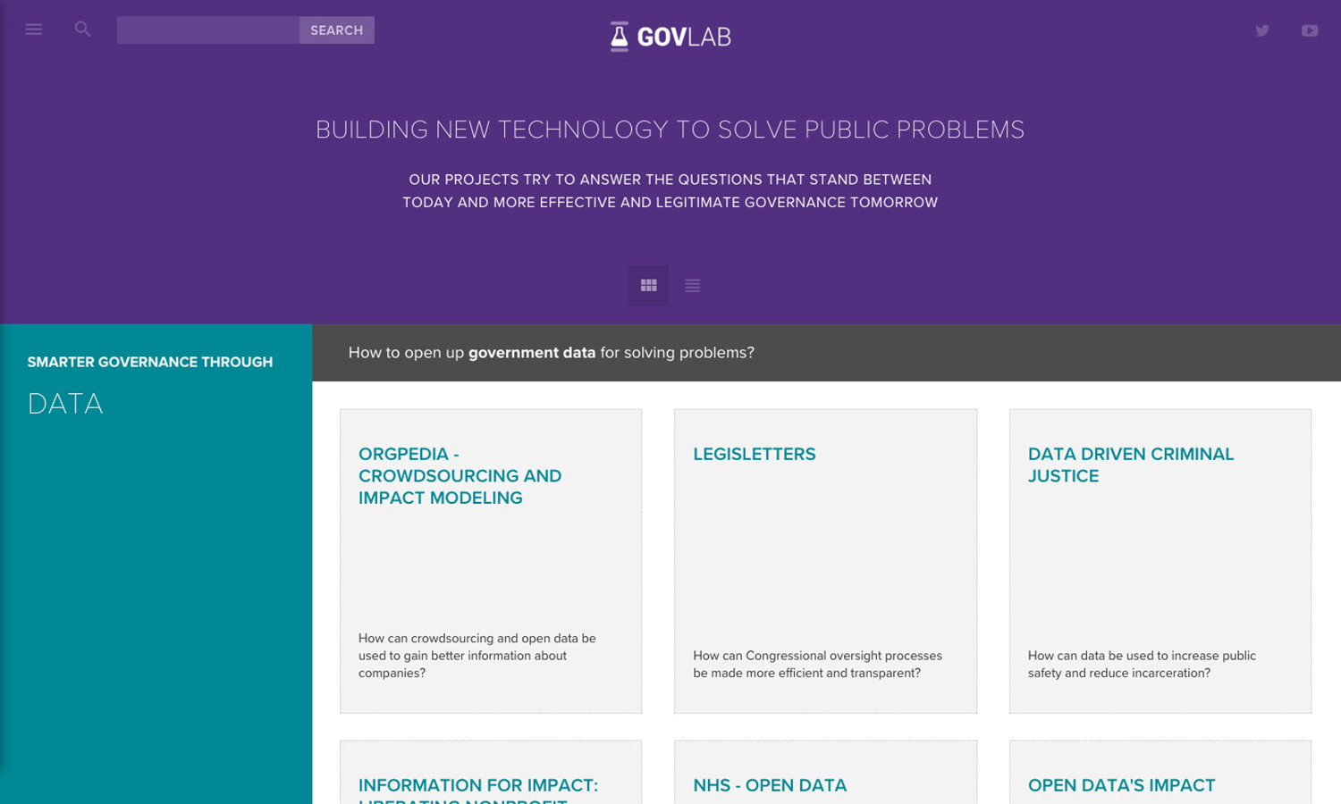 Institutional website redesign for The Governance Lab, showcasing research and innovation in governance.